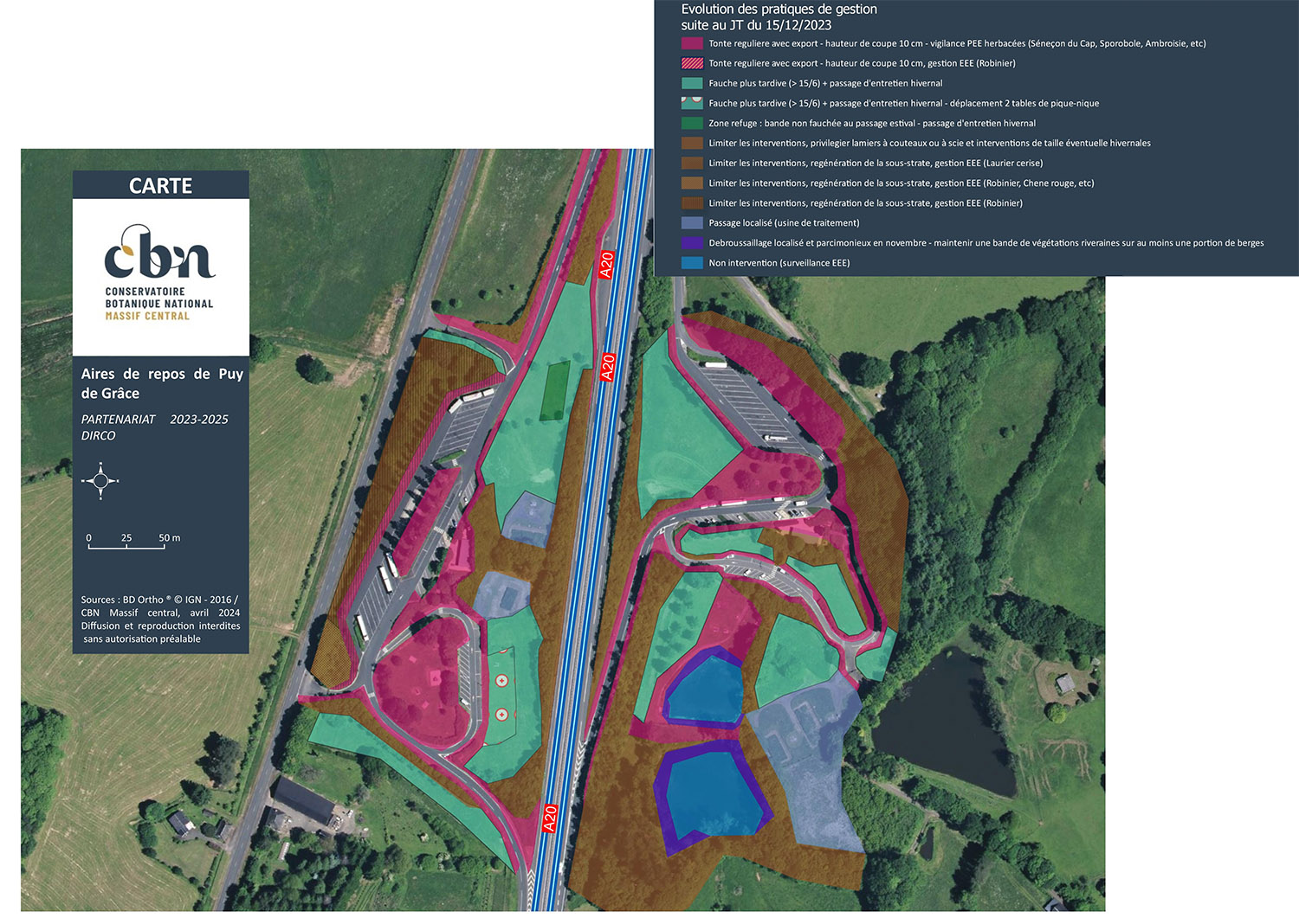 Dans le cadre de ce partenariat, un premier inventaire de la biodiversité floristique a été mené en 2023 sur les différentes aires de repos des routes nationales N141, N145 et de l’autoroute A20, ainsi que ponctuellement sur des aires de service devant faire l’objet d’un renouvellement de concession prochainement, sur de nouvelles aires de repos prévues et sur quelques dépendances.