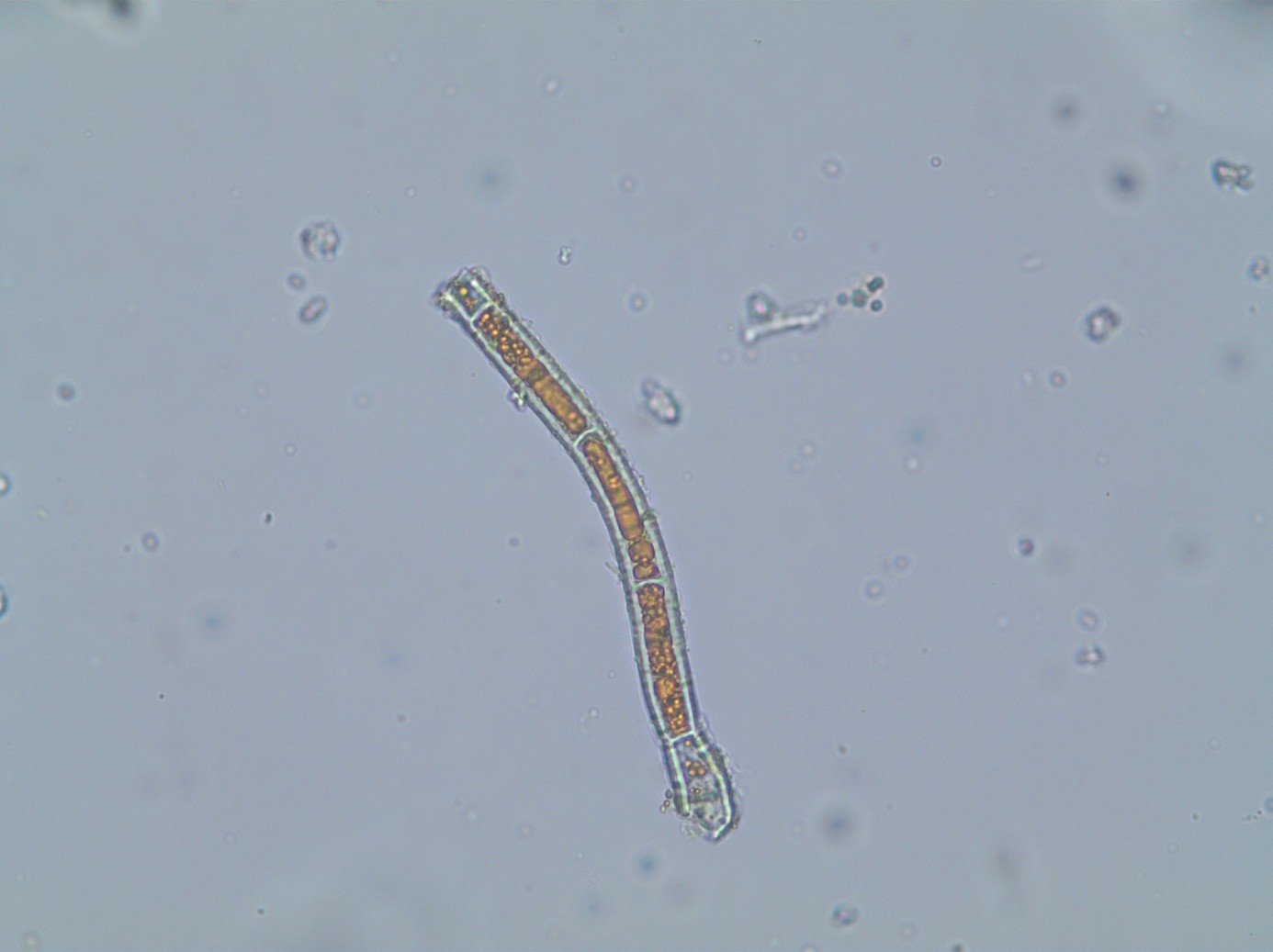Figure 2 : Vue des caroténoïdes intracellulaires de Trentepohlia aurea s.l. au microscope optique (grossissement X 400)